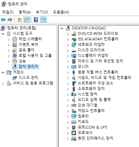 그래서 드라이버 업데이트를 해 주려고 장치관리자를 열었는데?