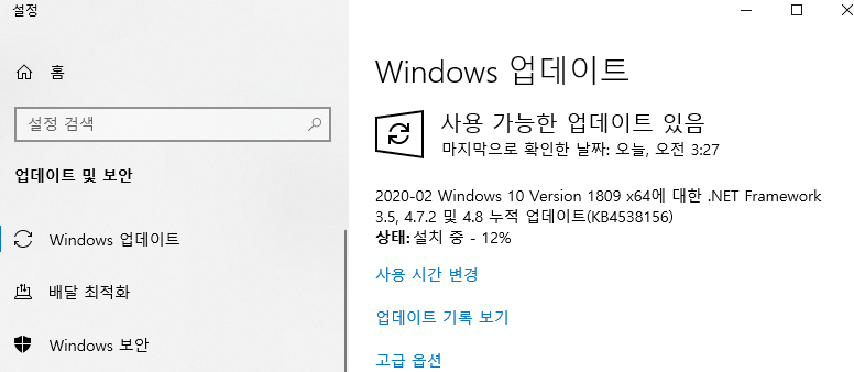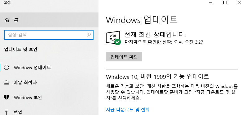 2. 업데이트 확인을 누르고, 설치가 안되어있는 업데이트들은 설치합니다.